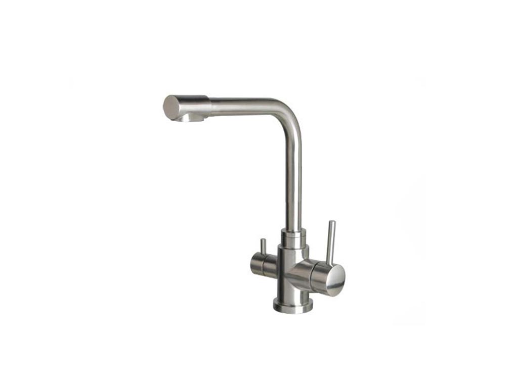 Um das gefilterte Trinkwasser, das durch eine Filteranlage – z.B. Untertischfilter Carbonit Vario – gefiltert wurde, zu entnehmen, bieten wir einen separaten Auslaufhahn oder eine 3-Wege Küchenarmatur an. Die verwendeten Materialien bei den wasserführenden Ausläufen sind Edelstahl, aus 99,9 % reinem Kupfer oder aus Messing verchromt.